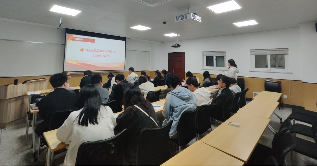 硕士二支部在中心606开展了“我为高质量发展做什么”主题党日活动。此次组织生活由支部书记王平主持。